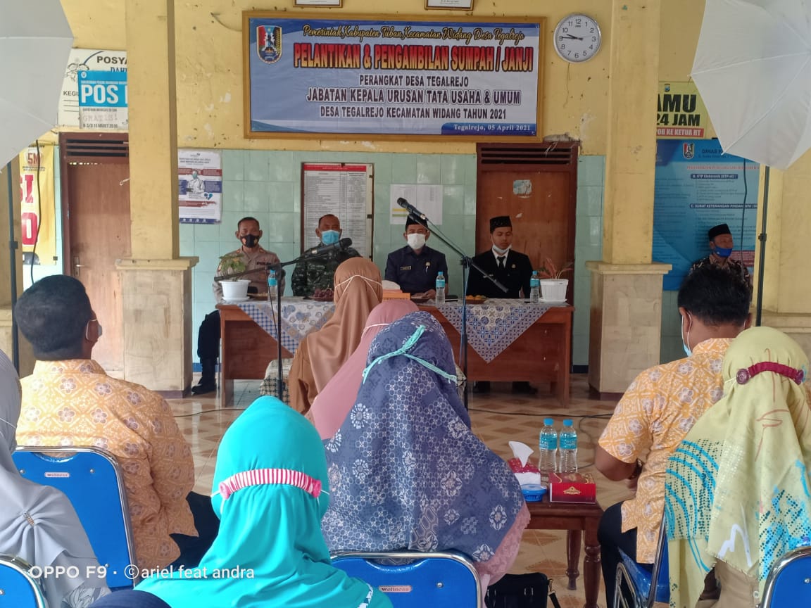seopini.com-polrestubanpoldajatim Mewakili Kapolsek AKP Totok Wijanarko, S.Pd., Waka Polsek Widang IPTU Ali Mas’ud, S.H., menghadiri Pelantikan Perangkat Desa Tegalrejo Kecamatan Widang bersama dengan Bhabinkamtimas Aiptu Erwin, Senin (05/04/2021).