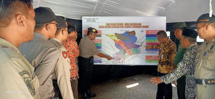 Lewat peta lokasi yang tersedia di Posko, Kapolsek menunjukkan beberapa desa yang ada di Wilayah Kecamatan Widang, saat ini dalam pantauan, mengingat letaknya berada di sisi aliran Sungai Bengawan Solo. Desa ini bisa terdampak banjir, seperti di Desa Patihan, Ngadipuro, Ngadirejo, Widang, Banjar, Tegalsari, Tegalrejo, Kedungharjo dan Simorejo, ” tutur Kapolsek.
